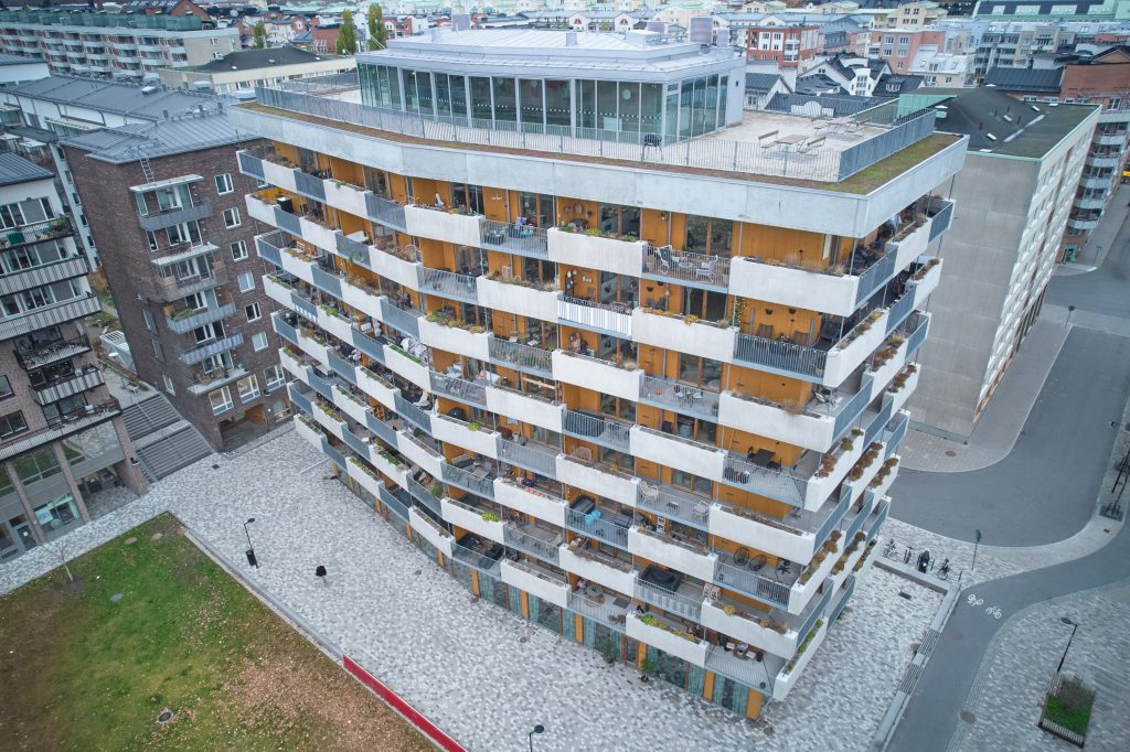 I det nya stadskvarteret vid Rosenlundsparken har vi projekterat tre hus, Kvartershuset, Parkhuset och Kv. Rosenlundshöjden med 219 lägenheter, förskola och lokaler i gatuplan.